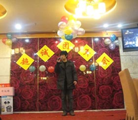 在這次團年會上,首先公司副總經理兼銷售部總監(jiān)宋萍女士作了致詞,而且還作了上年的工作總結及11年的五項重點項目布署,讓大家勢氣大增,精神鼓舞,讓大家有了更好的規(guī)劃與奮斗目標。緊接著,公司董事長宋宗團先生上臺發(fā)表了精彩的祝酒詞。揭開了2011年團年晚會的精彩表演。
