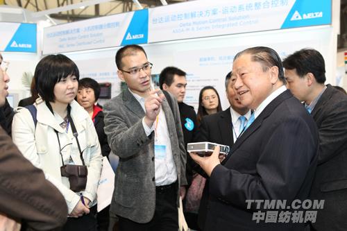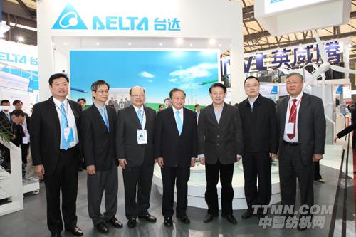 工業(yè)和信息化部副部長蘇波(前排中)在臺達集團創(chuàng)辦人暨董事長鄭崇華先生(右2)的陪同下參訪臺達展位