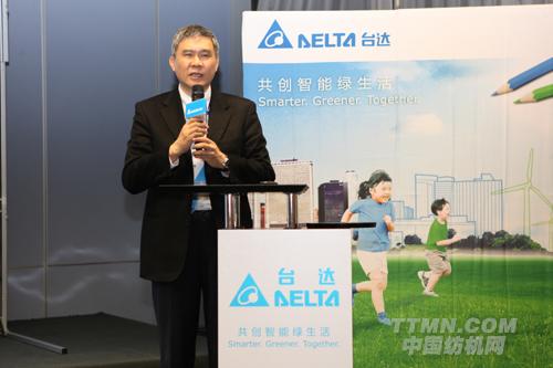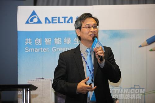 臺達機電事業(yè)部張訓海總經(jīng)理介紹臺達所展出之高階工業(yè)自動化系統(tǒng)整合解決方案。