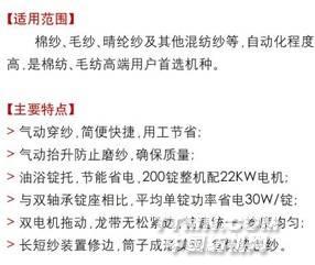企業(yè)創(chuàng)立至今,產(chǎn)品遍及國(guó)內(nèi)各大城市的紡織企業(yè)。其中,化纖倍捻機(jī)已銷售400萬(wàn)錠,氣動(dòng)穿紗短纖倍捻機(jī)也以其節(jié)能高效,穩(wěn)定方便的優(yōu)勢(shì)為國(guó)內(nèi)眾多知名棉紡企業(yè)批量采用。