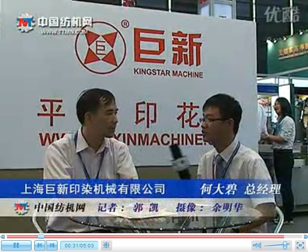 近日,2010年中國中國國際紡織機械展覽會暨ITMA亞洲展覽會于上海舉行,作為本土知名企業(yè),上海巨新印染機械有限公司受邀出席。在展會現(xiàn)場,記者有幸采訪到巨新公司的何大碧總經(jīng)理。據(jù)了解,本屆展會巨新公司帶來了最新研發(fā)的自動刮刀平網(wǎng)印花機。