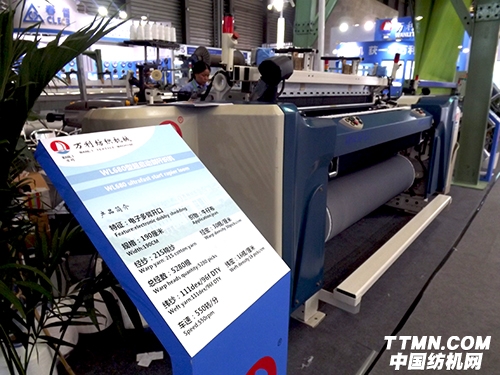 在本次展會上,浙江萬利紡織機械有限公司重點為我們展示了WL680型超啟動劍桿織機。該產品采用液壓馬達推動電機軸實現開口與引緯打緯系統的運動脫離,從而實現自動尋緯倒綜。通過變速織造控制系統、開關磁阻電機系統、液壓系統結合,實現織機速度的動態變化,同時實現織機的慢速動作。運用多個計算機并聯控制技術,觸摸屏式人機界面,張力傳感器感知經紗張力,旋轉變壓器感知織機主軸角度。讓此機具有定位停車、定位開車、慢速運動、自動尋緯、檔子補償、故障診斷、安全保護等功能。對紡織行業生產廠家來說,是一款不可多得的高性價比產品。