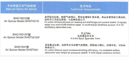 手動噴霧式空氣捻接器技術參數