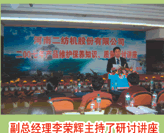 春風(fēng)和煦,鮮花盛開。四月十七日至二十八日我公司在信陽豫花園大酒店舉辦“2007年產(chǎn)品維護(hù)保養(yǎng)知識(shí)、質(zhì)量研討講座”。來自全國(guó)各地八十余名代表參加了講座。講座于十八日正式開幕。會(huì)上,公司董事長(zhǎng)牛玉生首先致歡迎詞,對(duì)來自全國(guó)地的代表表示熱烈地歡迎,并熱情地邀請(qǐng)代表到公司參觀指導(dǎo)。總經(jīng)理曹秀成向代表介紹我公司近幾年的發(fā)展情況和技術(shù)改造的進(jìn)展。總工程師陳立森向代表匯報(bào)了我公司新產(chǎn)品開發(fā)及與德國(guó)諾維佩勒公司合作生產(chǎn)的新型錠子等產(chǎn)品。十八日下午,總工程師陳立森向代表宣講產(chǎn)品使用維護(hù)、保養(yǎng)知識(shí)。天環(huán)公司經(jīng)理劉海播向代表講授鋼領(lǐng)工藝及使用情況,副總經(jīng)理胡傳勇向代表介紹了我公司質(zhì)量保證體系及公司產(chǎn)品質(zhì)量管理情況。最后代表互動(dòng)交流、踴躍發(fā)言,他們對(duì)我公司近年產(chǎn)品質(zhì)量的提升,對(duì)用戶們細(xì)致的服務(wù)表示贊賞。對(duì)公司產(chǎn)品提出了新的建議,祝愿雙方在以后的合作中取得雙贏。講座由副總經(jīng)理李榮輝主持。副總經(jīng)理唐質(zhì)明作總結(jié)性發(fā)言后,講座在熱烈的掌聲中圓滿結(jié)束。