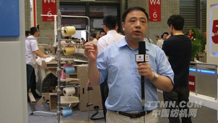 圖為:天門紡織機械有限公司焦總介紹公司產品