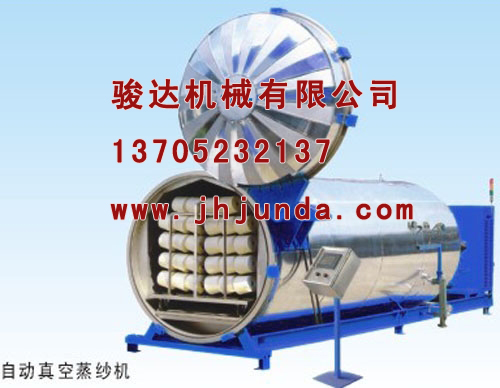 江蘇省金湖縣駿達機械有限公司專業生產蒸紗機、蒸化機、電汽兩用蒸紗機、全自動真空蒸紗機、蒸紗設備、蒸紗機器、紗線定型設備、電汽兩用紗線定型機、棉紗定型機、棉紗真空定型機、全自動棉紗真空定型機、棉紗加濕設備、氨綸定型機、窗簾真空定型機、全自動真空定型機、縫紉線真空定型設備、化纖低彈絲定型機、全自動蒸箱電腦控制系統、蒸紗缸、襪子定型機、數碼蒸化機、全自動蒸紗鍋。