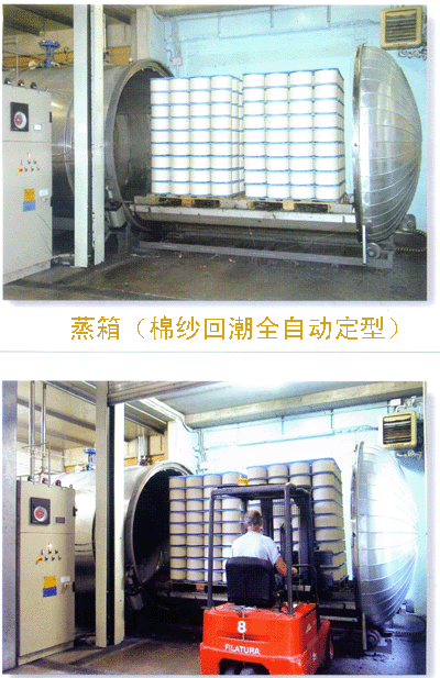 3.  氨綸包覆紗的熱定形 每一道生產工序(紡紗、加捻、織布……)都會引起紗和纖維的張力效應,張力的作用會引起紗的纏結。張力和纏結會給后道工序帶來問題,而人造纖維內分子結構的應力松弛令纖維產生收縮,因此,駿達公司生產的駿達氨綸包覆紗定型機給紗線生產帶來了最佳選擇。研究表明,以下類型的紗線必須使用蒸紗來進行松弛和定形:棉紗、毛紗、滌棉混紡紗、滌綸紗、包芯紗(氨綸)、縫紉線、人造纖維紗、腈綸絲束、網眼針織物(卷曲纖維)。飽和蒸汽是最理想的熱定形介質,它很容易滲透到筒紗內部,并在凝結時釋放能量。當紗線加熱到指定的溫度時,其溫度偏差維持在很小的范圍內。