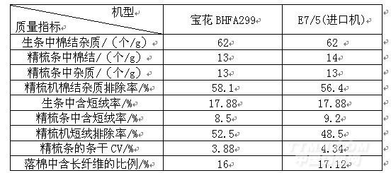 生條中含短絨率17.88%,精梳條中含短絨率8.5% , 因此通過(guò)精梳機(jī)梳理后精梳條中含短絨率比生條減少52.5%