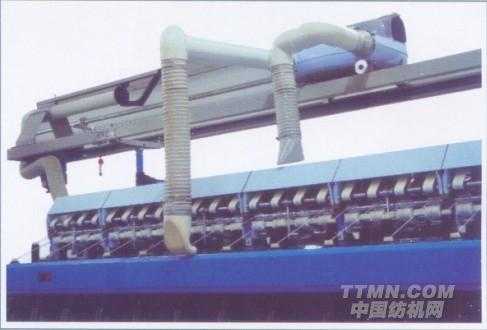 巡回清潔吹吸風裝置,自動吸取清潔絨板花,配以高效的機后吸塵裝置,巡回清掃上龍筋罩殼和車面上堆積的飛花,清楚下清潔絨板花,有效減少紗疵的產生。