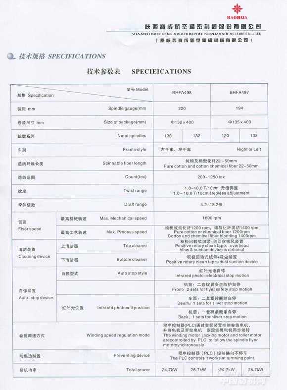 BHFA498、BHFA497型粗紗機是寶成公司研制開發的新型無錐輪棉紡粗紗機,具有主傳動機械結構簡單、機電一體化程度高等特點;適用于普梳和精梳等棉型纖維的純紡或混紡,能將并條后的熟條加工成不同支數和捻度的粗紗,以供編制高質量的細紗。