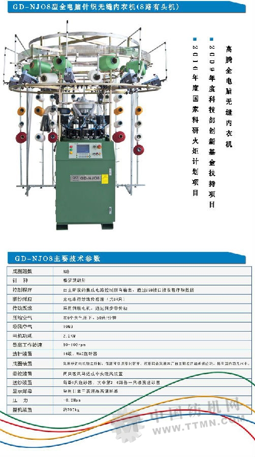 GD-NJ08型全電腦針織無縫內衣機(8路有頭機)