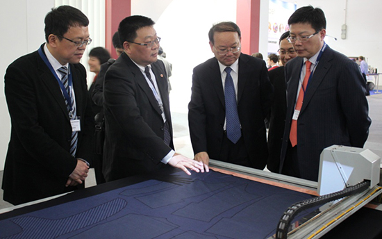 中國工業和信息化部消費品司副司長王偉、中國紡織工業協會副會長高勇、中國產業用紡織品行業協會會長李陵申、中國縫制機械協會秘書長楊曉京等相繼走訪參觀了和鷹科技展臺。高會長對和鷹科技在Texprocess這樣的專業頂級展會中所體現出的國際化和專業化表示高度贊賞。(如圖7)