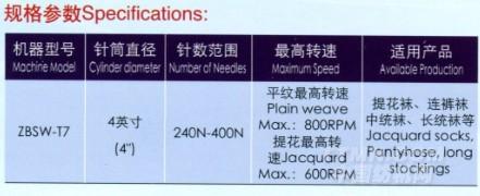 本設備可編織平紋、暗花、集圈、網眼、雙羅口、添紗、提花等組織,廣泛適用于尼龍絲、包芯絲、天鵝絨、錦綸、牛奶絲等原料的絲襪織品,織品主要有各型提花襪、對對襪、中統襪、長統襪、連褲襪、九分褲、連身襪等。