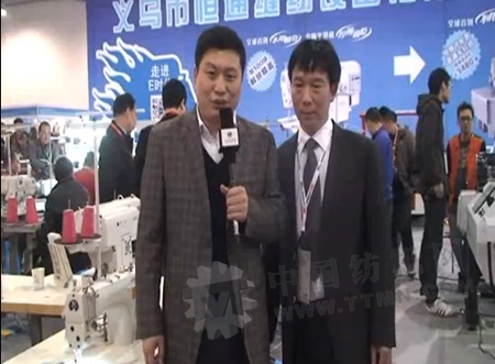 記者:觀眾朋友們大家好,中國紡機(jī)網(wǎng)記者紡友,在2013年義烏展現(xiàn)場給你做現(xiàn)場報道,我們現(xiàn)在所在的展臺是浙江省義烏恒通縫紉設(shè)備有限公司的展臺,恒通公司的劉總在這個行業(yè)已經(jīng)深耕多年,恒通公司也是義烏最大的縫紉設(shè)備流通商之一。