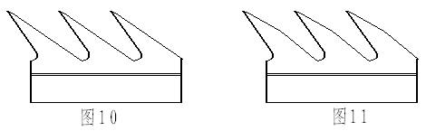 (1)h1、h6:齒深大齒隙容量大,可容納纖維多,有利于纖維的轉移、凝聚作用,并能適應高產和重定量的要求。h1大,道夫針布接觸纖維長度長,道夫針面的抓取力大,有利于纖維的反轉移,可提高轉移率。h6大,齒隙大,能利于疏通錫林、道夫三角區高速回轉氣流的下瀉,棉網結構好。缺點抗軋性能差。