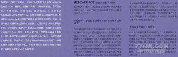 島精SWG-FIRST系列中,新推出了配備新開發的SlideNeedle全成型針的18針和21針WG-FIRST154電腦橫機。配備R2CARRIAGE急速回轉機頭系統,I-DSCS+DTC智能型數控紗環系統+能動張力控制裝置,更加方便可靠的針織機器。