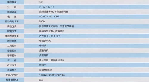 本機(jī)具有自動(dòng)放針、單面自動(dòng)全收針、單面自動(dòng)暗收針、自動(dòng)連片編制、自動(dòng)擴(kuò)幅、自動(dòng)收幅、自動(dòng)四色換紗、自動(dòng)三角切換、自動(dòng)密度控制、自動(dòng)移床、自動(dòng)翻針、自動(dòng)卷取、自動(dòng)計(jì)件、自動(dòng)打記號(hào)、粗結(jié)自停、斷紗自停等功能。