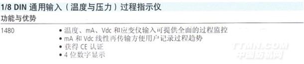 1480型1/8DIN通用輸入溫度與壓力過程指示儀功能與優勢