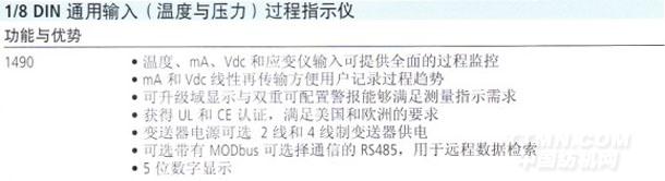 1490型1/8DIN通用輸入溫度與壓力過程指示儀功能與優勢