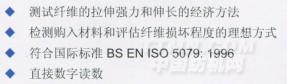 單纖維強力測試儀SFS:001儀器專門為測試單纖維的斷裂強力而設計。儀器設計精巧,基于人體工程學的定位設計,使得儀器的操作非常簡便。儀器非常適合于評價處理過程中的纖維損壞,以及作為購入材料的常規質量控制。