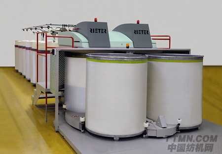 不帶自調勻整雙眼并條機SB-D 22是唯一配有直徑達1 000 mm大條筒自動換筒裝置的雙眼并條機,保證了最大的機器效率。變頻驅動的主電機使機器的出條速度高達1 100 m/min,在控制面板上可方便地調節出條速度。技術成熟的立達4上3下牽伸系統,確保了出色地成紗質量。獨特的牽伸系集中設置,在顯示面板上易于修改出條速度,也提高了客戶的受益。能耗則比其他廠商的機器降低約20 %。