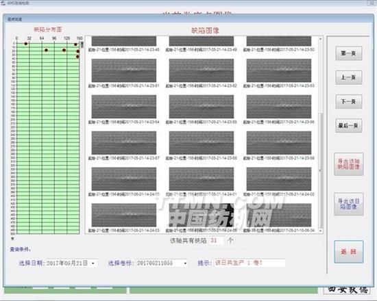 數據統計:采用數據庫保存每卷布的疵點詳細記錄和疵點圖像,單機可實現所有數據的10年永久存儲??梢詾g覽本卷和歷史上3個月內任一卷的疵點圖像記錄;