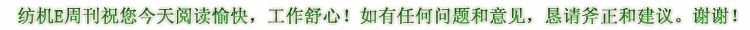 網(wǎng)絡(luò)E時代,悅讀零距離。紡機E周刊,閃亮新登場!紡機網(wǎng)全新打造電子雜志新欄目正式與您見面了!第一時間,第一現(xiàn)場,第一報道,第一發(fā)布。引導(dǎo)行業(yè)潮流,速遞紡機行情。紡機E周刊,紡機行業(yè)驅(qū)動力!