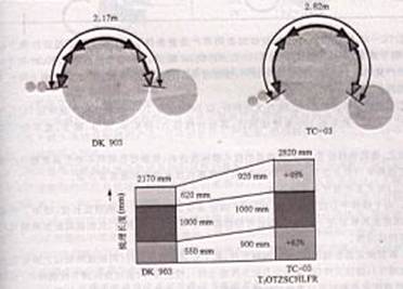 1.1.1、由于與TC-03一樣提高錫林中心距20公分,因此加長了梳棉機(jī)的梳理區(qū),梳理弧長由2。17米增加到2。82米,使梳理質(zhì)量優(yōu)異,可獲得最好的梳理效果,