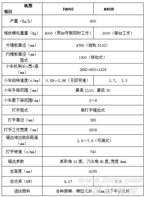 三、幾種園盤式抓棉機(jī)技術(shù)特征 見表2-2-1