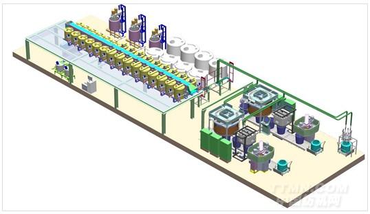 自動調漿系統由調漿分配頭、稱重電子秤、配料工作站、二工位分配頭(可選)、二工位電子秤(可選)、色漿攪拌機、母液儲罐、母液輸送管路、自動輸送軌道等構成。