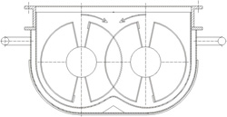 | 其外殼采用底部為圓形,上部為矩形,殼內排列有2-4根空心攪拌軸,軸與殼體間有密封端蓋。上蓋體 |