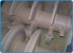 | 密集分布的空心漿葉,殼體夾套與空心軸同時加熱物料。 |