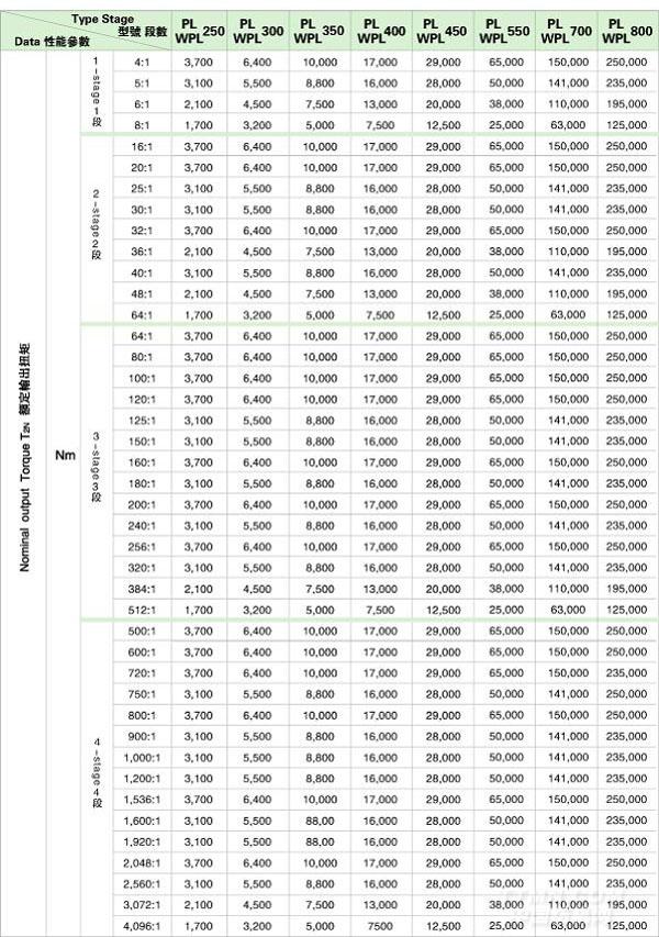 PL/WPL 系列精密行星減速機(jī)技術(shù)參數(shù)