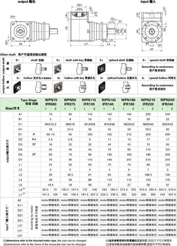 WPN/IFR電機(jī)輸入型式外形安裝尺寸