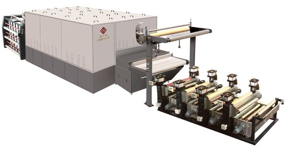 毛條復洗是毛精紡行業的一道必須的工序。由于現有的毛條復洗機的烘干均采用蒸汽烘干的方式,產量低,能耗大,對纖維的品質損害大,對染色、漂白質量都有一定影響,成為制約毛條復洗工序中的瓶頸因素。毛條烘干機采用微波烘干的方式,利用水分子在高頻電場中自身的摩擦產生熱能,達到烘干的目的。由于微波烘干的效率高、溫度低,可以大幅度提高毛條復洗機的產量,而且可以最大限度地保證纖維的天然品質不受損害,不會產生高溫烘干時引起泛黃和染料泳移現象,后的纖維彈性好,強力不受損失,提高制成率。