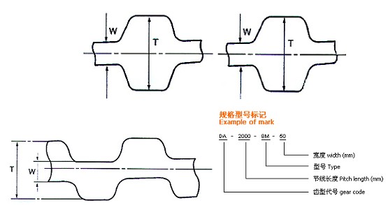 雙面齒同步帶的節距和齒形等同于單面齒同步帶的齒形和節距。
