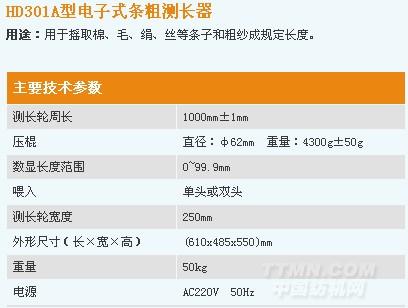 您所在的位置:紡機網 > 產品庫 > HD301A型電子式條粗測長器