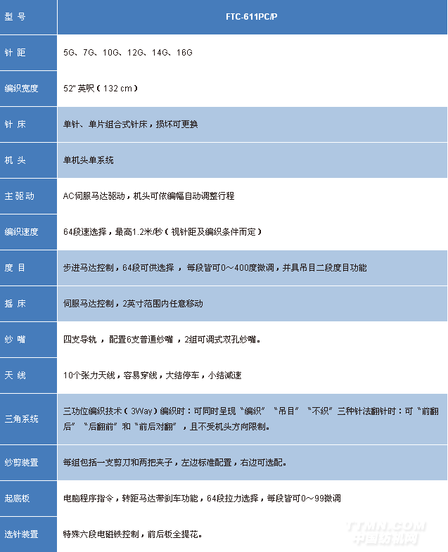 單機頭單系統,起底板(可選)機型,該系列采用數字化技術實現橫機的翻針、吊目、挑孔、無虛線嵌花、提花、放針、明收針、暗收針及其他規則花型編織功能,可編織基本針織組織(四平、坑條、單面等),多色無規則提花組織、嵌花組織,絞花組織、阿蘭花組織、挑孔組織等緯編組織。增加起底板剎車功能,起底動作精確、穩定,有效的減少紗線的浪費,提高生產效率。