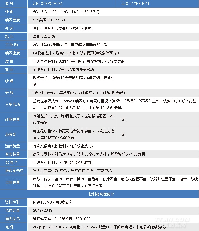 單機頭,雙系統。采用數字化技術實現橫機的自動翻針、吊目、挑孔、無虛線嵌花、提花、明收針及其他規則花型編織功能。可編織基本針織組織(四平、單面等)、多色無規則提花、嵌花(引塔夏)、絞花等緯編組織。適用于真絲、絹絲、合纖絲、羊毛、晴綸、混紡、紗線等原料編織毛衫成衣、圍巾、帽子、以及服裝附件。