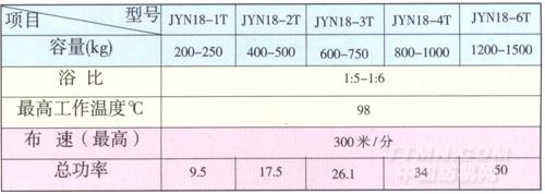 該機具有容布量大、浴比低、布速快、適應性強、占地面積小,節水、節電,操作簡便可靠。主要適用于各種厚薄純棉織物的煮、染、漂洗。織物在處染過程中始終處于松馳狀態,是一種低張力大容量,并能獲得優良染色效果的新型染整設備。