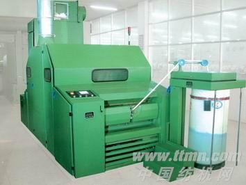本機將清梳聯喂棉箱輸送的筵棉進行梳理,除雜并排除部分短絨后,集束成較均勻的棉條,有規律的圈放在棉條筒內,供后續工序使用。本機設計最高出條速度220米/分,實際產量在35-55公斤/小時,用PC機控制,設有長短片段自調節勻整裝置,采用多電機轉動,簡化了傳動機構。本機主要零部件如機架,錫林筒體,道夫筒體等均采用鋼板結構、刺輥下設預分梳板,錫林前后各設三根固定蓋板,活動蓋板總數為80根,工作蓋板為30根,蓋板運行方向與錫林轉動方向相反,整機牢固可靠,外形整齊,安全可靠。