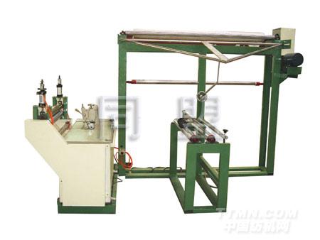 將有尼龍質或特多尼龍質成分之針織布或平織布,寬度對折成半幅,經由超音波熔接機車成圓筒布;再送至橫式斜裁復卷機,除裁成45度,并卷取后,再送至單刀分條機裁條。以超音波縫布機,布邊熔接縫合,切邊后無接點,既省布料又美觀。輥輪以氣壓缸動作,安全性佳。兩組馬達,微調動作。搭配橫式斜裁復卷機及單刀分條機為整套設備