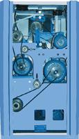 (二)傳動系統:SXF1492粗紗機采用四個電機獨立傳動,分別傳動錠翼、羅拉、卷繞和龍筋升降,大大簡化了傳動機構。取消了鐵炮粗紗機車頭傳動齒輪箱、捻度變換齒輪、成形齒輪、龍筋升降齒輪等。調整工藝方便。減少保全保養的工作量。