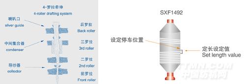 SXF1492型粗紗機采用多個高精度的旋轉編碼器與電腦組成實時檢測、反饋控制系統,在整個紡紗過程中,按預置的數學模型自動控制紡紗張力。防開關車細節產生的控制系統,有效的穩定了紗線質量。