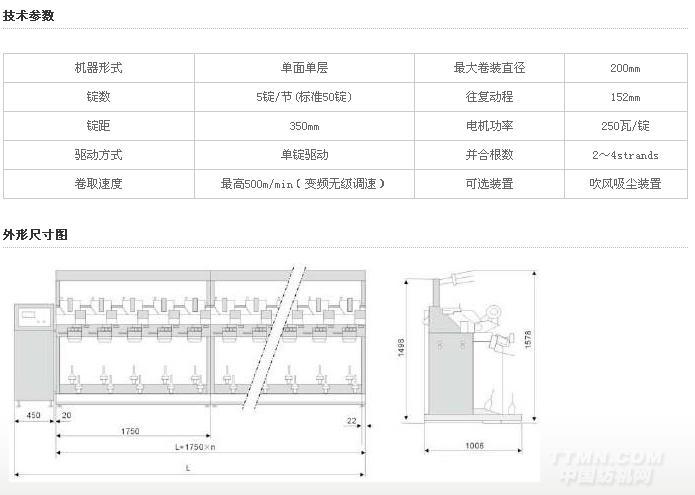 倍捻機的前道設備,把不同的規格的原料筒子并合成可在倍捻機上加工的平行筒子,并合提供氨綸絲與其他紗線的并合功能。