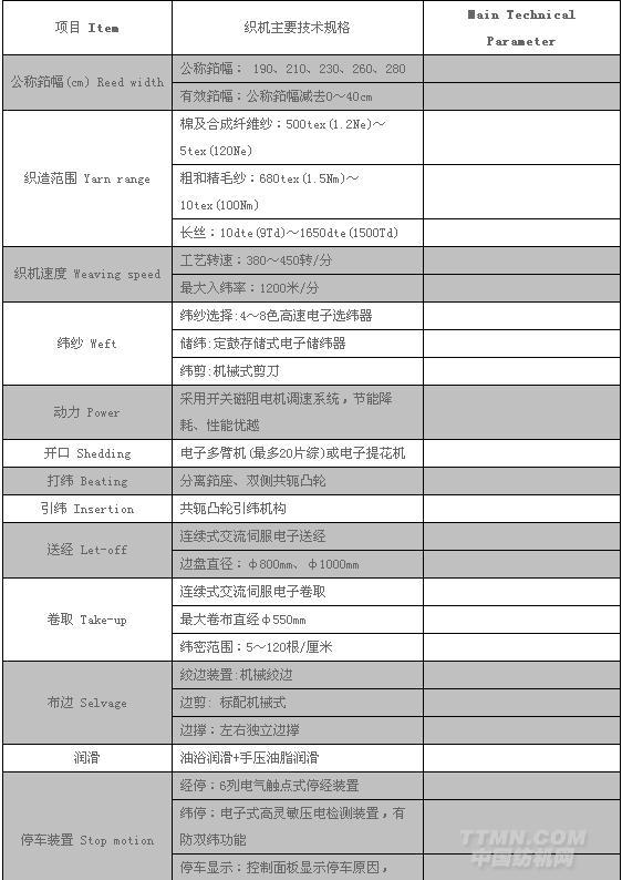 對織機開口、引緯、送經、卷取等機構進行特殊設計,適應品種廣,可織造牛仔布、白坯布、粗紡呢絨、勞動布和燈芯絨布、室內裝飾用全棉和混紡布、輕型和中厚型工業纖維、亞麻布、玻璃纖維等。