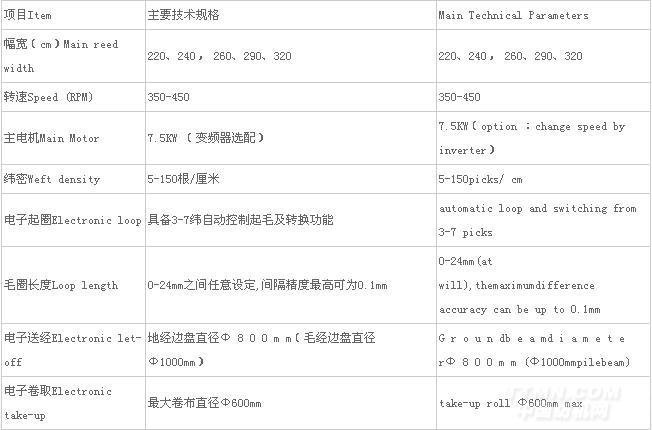 RFTL60型高檔毛巾劍桿織機(jī)采用電子送經(jīng)、電子卷取、筘動(dòng)式電子起毛圈機(jī)構(gòu),具有最先進(jìn)的電子控制功能,毛圈可由3~7緯任意轉(zhuǎn)換,并可在運(yùn)行中自動(dòng)變緯密,除能織造普通毛圈織物外,還可織造高低毛、凸凹毛、波浪毛、單面毛等高檔毛圈織物。該機(jī)填補(bǔ)了國(guó)內(nèi)高檔毛巾織機(jī)領(lǐng)域的空白,達(dá)到國(guó)際先進(jìn)水平。
