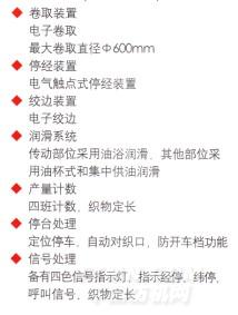 用戶根據需要選擇中文或英文顯示班產、織物定長、經紗張力設定,緯線選擇,電磁閥啟閉時間等織造工藝參數;織機狀態監控;自我故障診斷。