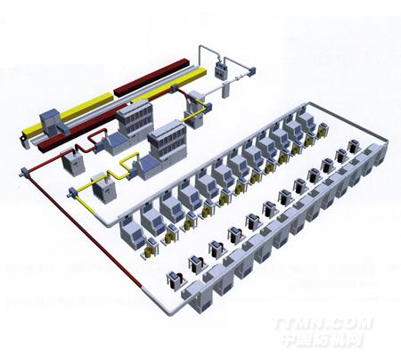 PLC智能系統(tǒng)一機(jī)兩線設(shè)備流程中的CPC預(yù)開(kāi)棉機(jī),可根據(jù)原棉的含雜質(zhì)不同,設(shè)置兩組除雜工藝,與搖板閥同步變化,除雜效率更高,纖維損傷最小。一機(jī)兩線清花的兩條喂棉管道尾端可以閉環(huán)連接,(配16臺(tái)梳棉機(jī)以下)并加裝若干各插板閥,即可滿(mǎn)足兩條清花線不同產(chǎn)量的供應(yīng)關(guān)系。