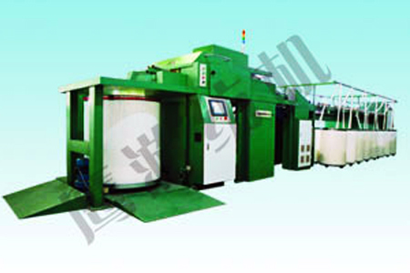 FA900型混合針梳機是一種高速并條機,它具有合理的牽伸機構(gòu),先進的壓輥式高架導條,同步齒形帶傳動,PLC程序控制系統(tǒng)等特點。是將前道工序下來的條子進行并合、牽伸、梳理,以達到纖維混合均勻和平行順直的作用,以形成粗細均勻的條子。毛條通過導條架、導條輥、導條圈和喂入滑臺后并合到一起,有秩序的排列成一定寬度、厚度均勻的毛層,呈平行狀態(tài)進入預牽伸區(qū),然后進入梳理區(qū),在回轉(zhuǎn)的針板控制下形成較長的中間控制區(qū),防止短纖維在牽伸區(qū)內(nèi)作不規(guī)則運動,最后經(jīng)圈條器進入條筒